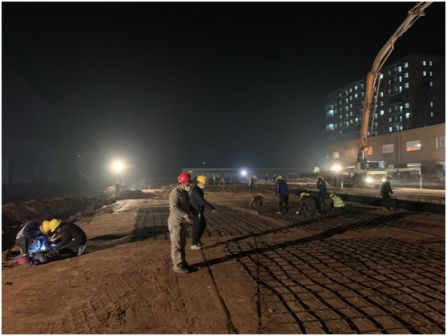 2月11日广水市健康中心“一院区、三隔离点”建设全面启动,场地平整及硬化、方舱安装、边坡治理、地下管网、市政配套是项目建设的重点工作。通过连续24小时持续的场地平整,2月12日夜间开始浇筑地坪,针对北坡以北是一个大池塘,边坡主要是回填土形成,后期可能出现不均匀沉降和边坡垮塌的的风险,监理机构要求施工单位对场地进行了严密的分层碾压,并向建设单位提出了在临近边坡位置增设底板钢筋的建议,建设单位予以采纳,并形成了边坡防水土流失的治理方案,确保了方舱基础和边坡稳定。