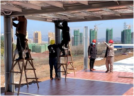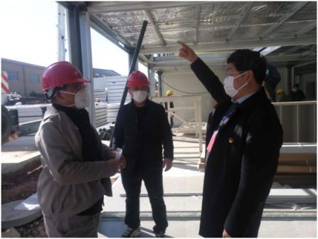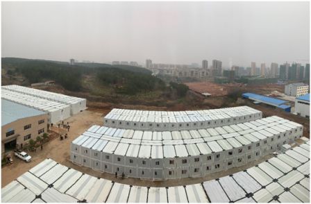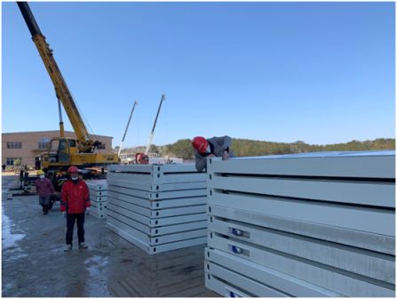 天气预报2月15日广水有雨雪,项目建设者们与时间赛跑日夜不间断施工,在2月14日夜间完成了所有地坪混凝土浇筑并采取了一些列的防冻措施,首次浇筑的地坪开始搭建方舱。2月15日广水市下起了鹅毛大雪,河北邯郸、山东潍坊两家方舱供应商因当地疫情危机和沿路大雾天气放缓了对方舱供货的速度。巧妇难为无米之炊,可是疫情不等人,监理机构建议政府和建设单位加强与供应商及所在地政府之间的沟通,并要求采购部门安排专人到方舱供应商所在地去蹲点抢供货,打通了供货、运输的各个环节,确保了物资供应,在原本工期已经延误的基础上抢回了物资,要求施工单位通过增加安装人员昼夜不间断安装抢回了宝贵的时间。